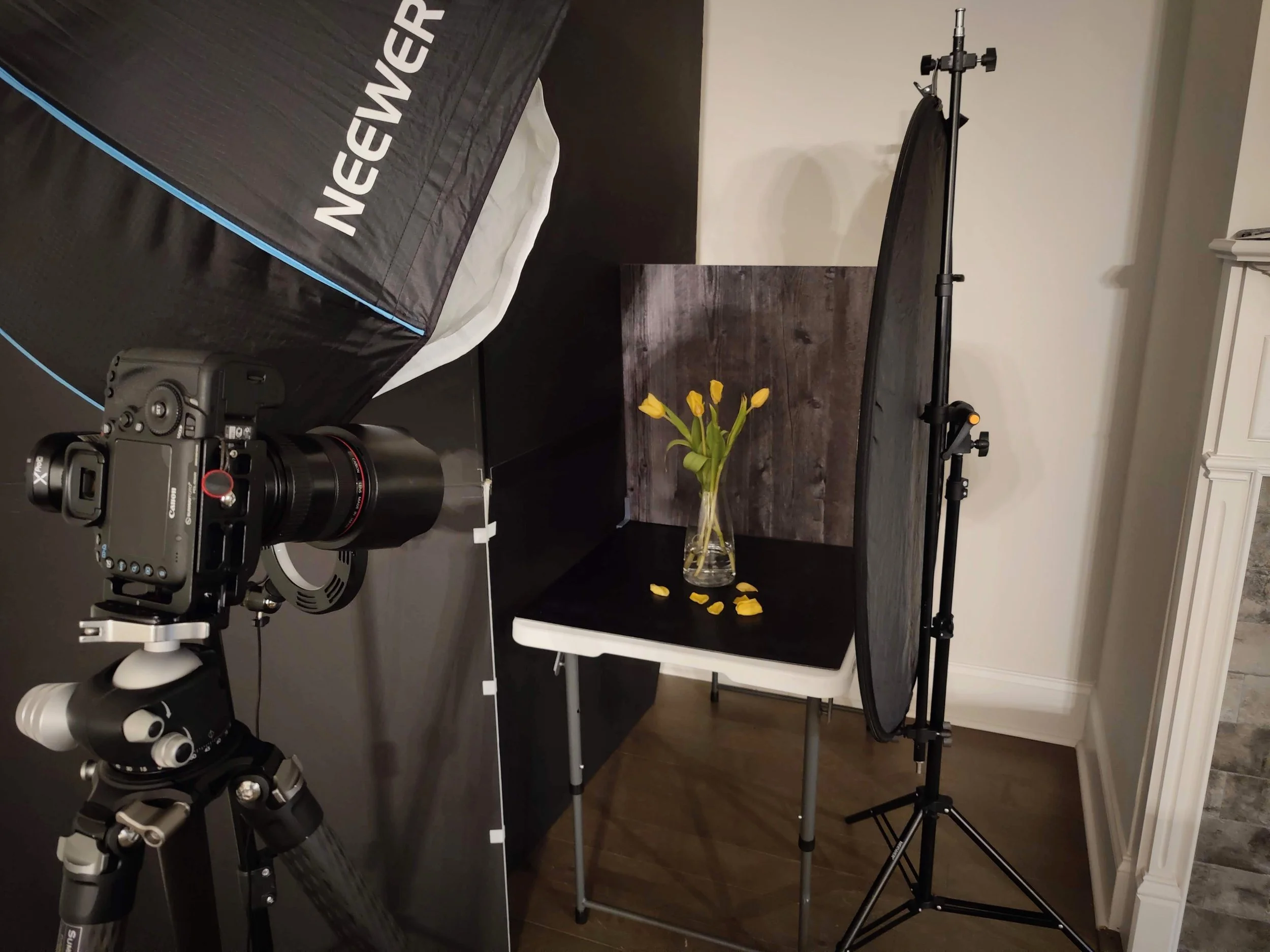 For most of the shots, I used a combination of weathered wood and slate replica surfaces because I wanted the tulips and vases to stand out from the background and shadows. I used my Canon 5D Mark III in manual mode and played around with different lenses (100mm f2.8, 70-200mm f2.8 L, and 24-70 f2.8L), focal lengths, apertures, and shutter speeds.